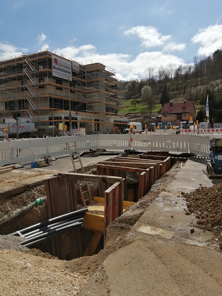 Auf Grund zahlreicher vorhandener Leitungen entlang der B 10, darunter eine Gashochdruckleitung, kommen die Arbeiten langsamer voran als ursprünglich geplant. Die Baustelle mit der Verschwenkung der Fahrbahn wird daher noch bis 24. April andauern.