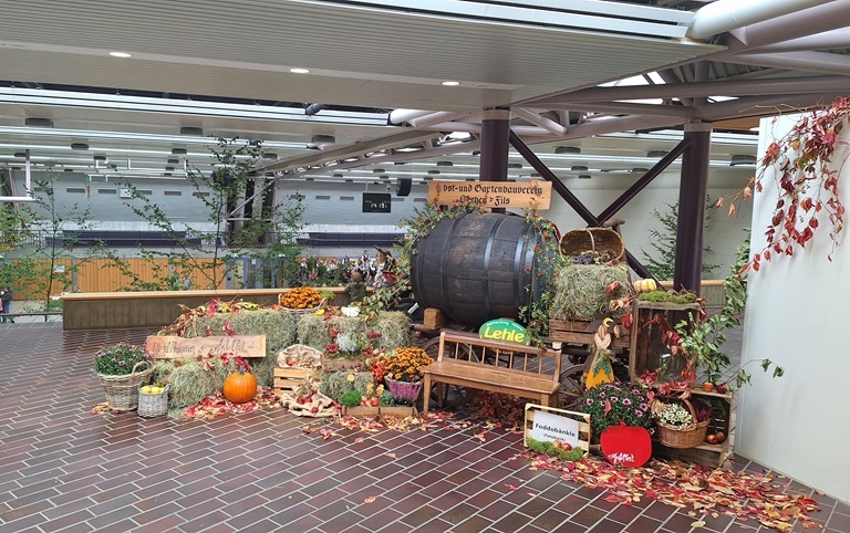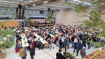 Was für ein tolles Bild sich hier bietet – so der Tenor der eintretenden Gäste in der Ankenhalle. Die Mitglieder des Obst- und Gartenbauvereins hatten am oberen Eingang für ein stimmiges Bild mit toller Deko und einem kleinen Bänkle, das zum Fotografieren einlud, gesorgt. Auch die Landfrauen hatten mit viel Liebe zum Detail die Halle von den Tischen bis zur Bühne wieder herrlich herbstlich dekoriert.