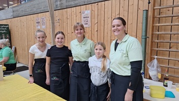 Das Apfelfest ist im jährlichen Terminkalender der Gemeinde nicht mehr weg zu denken, denn wo gibt es schon so eine tolle Auswahl an selbstgebackenen Apfelkuchen (50 Stück!), schmackhafte Käsebrote – natürlich dekoriert mit Apfelstückchen - eine tolle Auswahl an knackigen Äpfel und Birnen, neuem Apfelsaft und von der Girlsgruppe der Landfrauen frisch gebackene Apfelwaffeln. Auch das ein oder andere Fachgespräch mit den Mitgliedern des Obst- und Gartenbauvereins wurde geführt. Nicht verwunderlich daher, dass sich bereits um 14.30 Uhr eine Schlange am leckeren Apfelkuchenbuffet bildete und fast alle Sitzplätze besetzt waren.